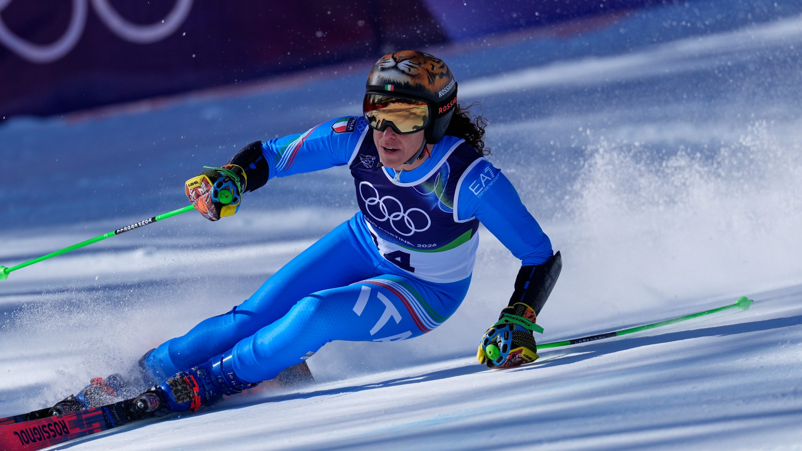 Po odstopu izkušene Bucik Jogan je za najboljši slovenski dosežek na veleslalomu v Cortini d’Ampezzo poskrbela olimpijska debitantka iz Nabrežine. Zamejka v slovenski reprezentanci Caterina Sinigoi je z zaostankom 6,96 sekunde končala na 31. mestu, Nika Tomšič pa je z zaostankom 8,39 sekunde končala na 36. mestu od 54 tekmovalk, ki so pravilno izpeljale obe vožnji.