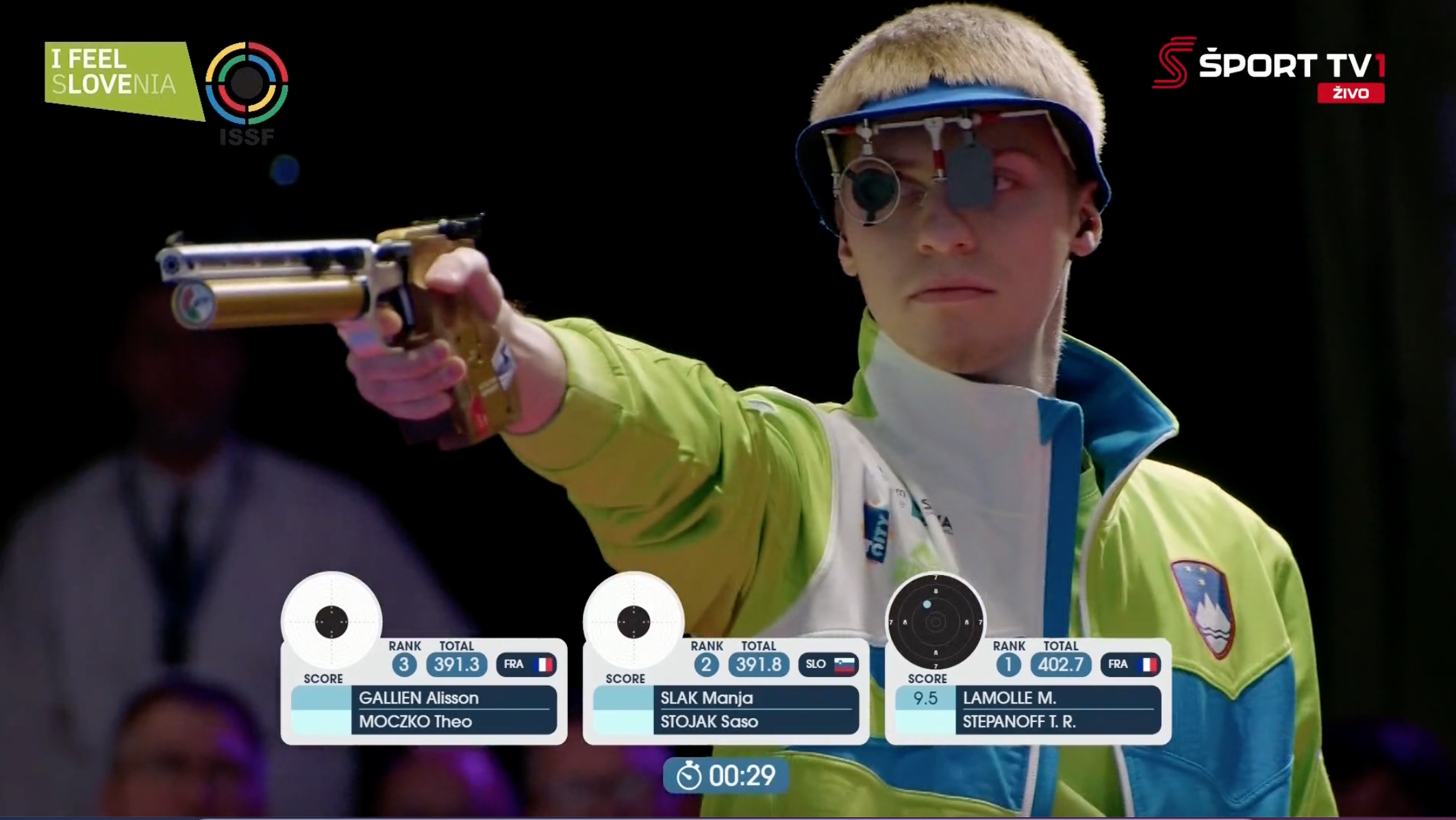 Slovenske barve sta zastopala Manja Slak in Sašo Stojak, ki sta si v konkurenci šestih parov z dobrim nastopom v kvalifikacijah priborila mesto v finalu. Med štirimi finalisti, dvema paroma iz Francije, enim iz Španije in slovenskim parom, sta Slakova in Stojak nadaljevala z zanesljivim streljanjem ter se na koncu veselila srebrne medalje.