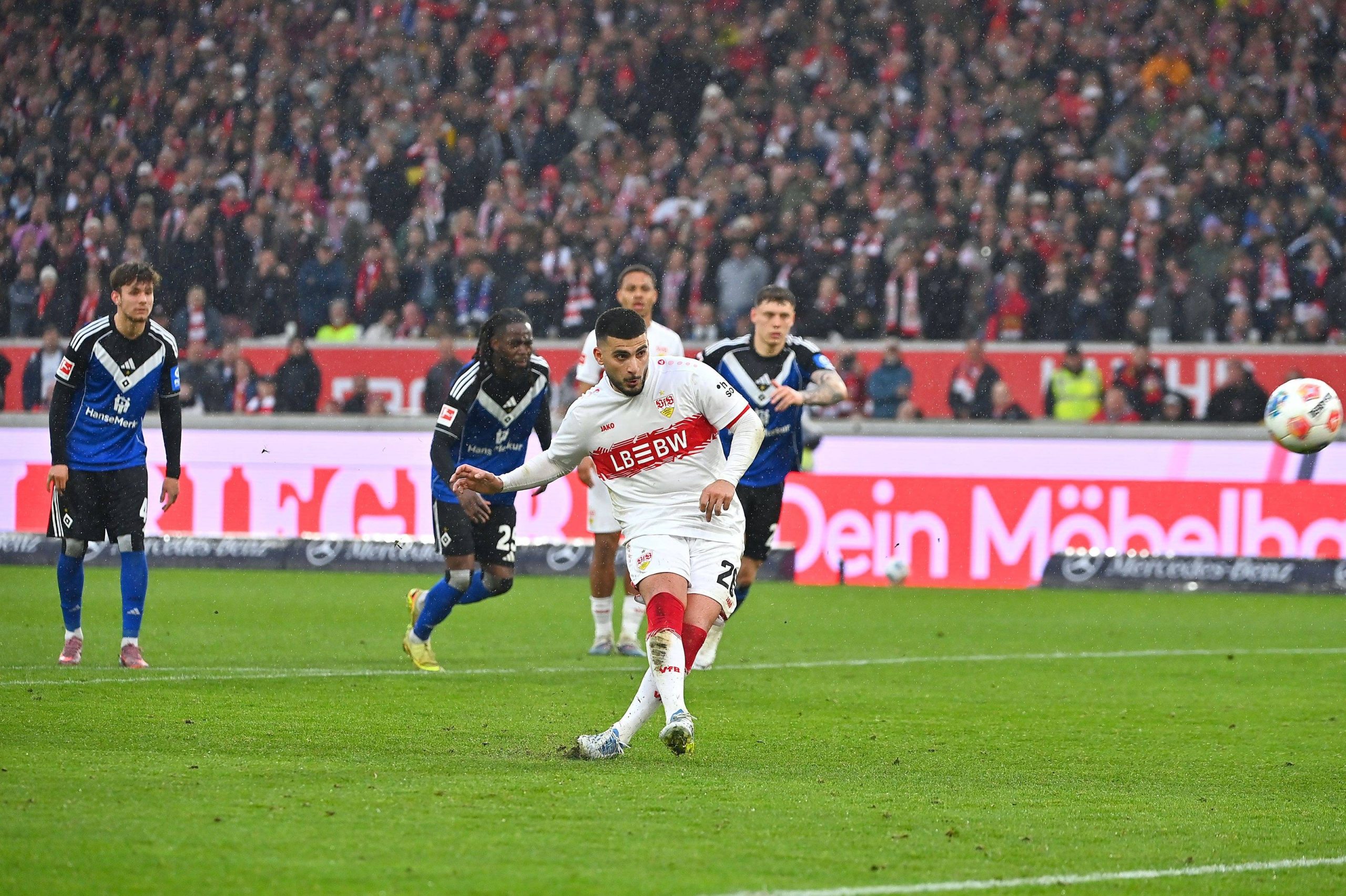 Stuttgart je upravičil status favorita v boju s povratnikom v ligi iz Hamburga. Goste sta v prvem delu načela Angelo Stiller in Chris Führich, v drugem sta zadela še Maximilan Mittelstädt in ob koncu Bilal el Hanous. Domačim se ob premoči ni poznala niti zapravljena enajstmetrovka Deniza Undava v 82. minuti.