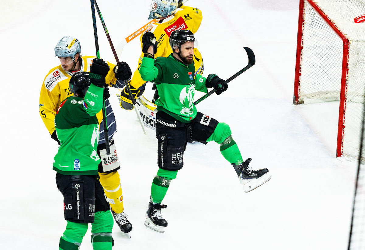 Ljubljanska zasedba si je v 42. minuti znova priigrala zajetno prednost, v razmaku 32 sekund sta zadela Nicolai Meyer in tretjič na tekmi razigrani Drozg, nato pa je kljub dvema prejetima goloma v zadnjem delu tekme rezultatsko nadzorovala hokejiste iz avstrijskega glavnega mesta.