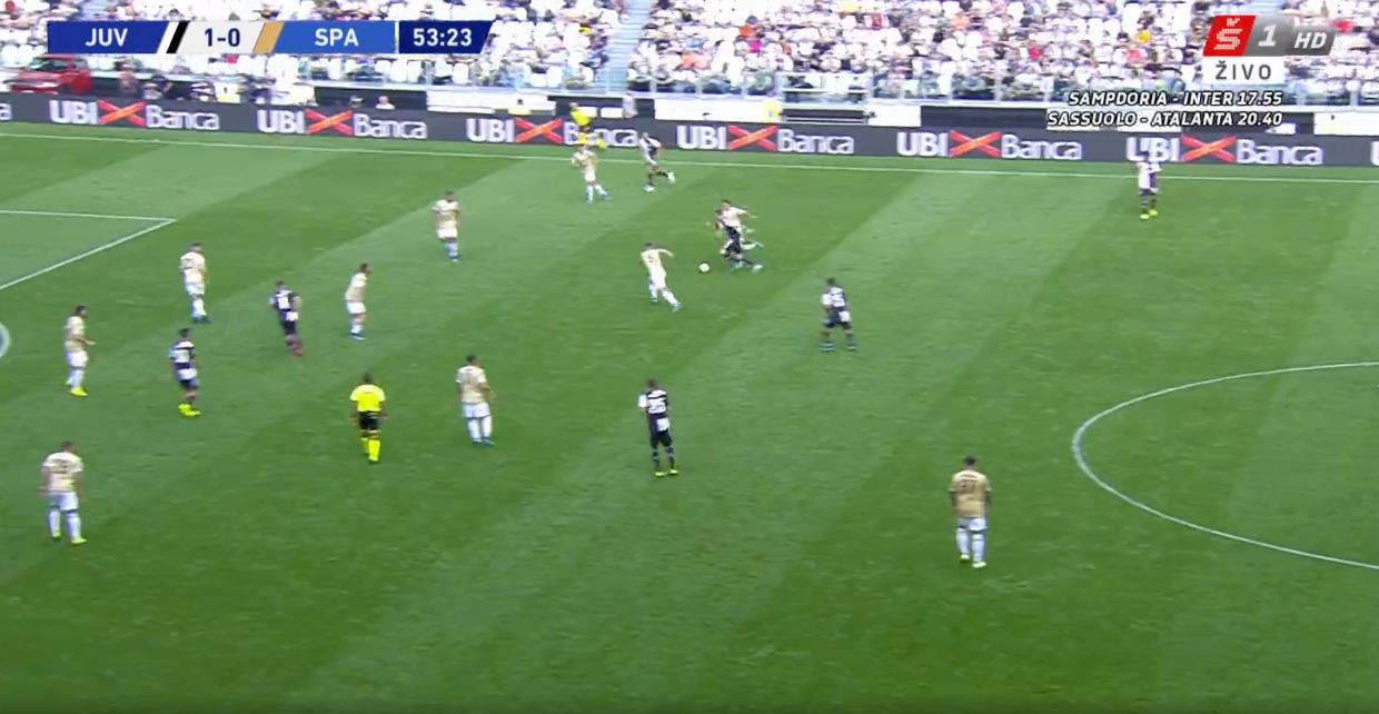 Cristiano Ronaldo je bil v svojih mlajših letih znan po hitrih spremembah tempa, element, v katerem še vedno slovi Leo Messi. Portugalec pa je z leti izgubil nekaj hitrosti z mesta, a je na tekmi proti Spalu obudil svojo vrlino. Sprehodil se je mimo obrambe gostujoče ekipe ter nato podajal v sredino, a je veselje zadetka Samiju Khediri preprečil izjemni Etrit Berisha.