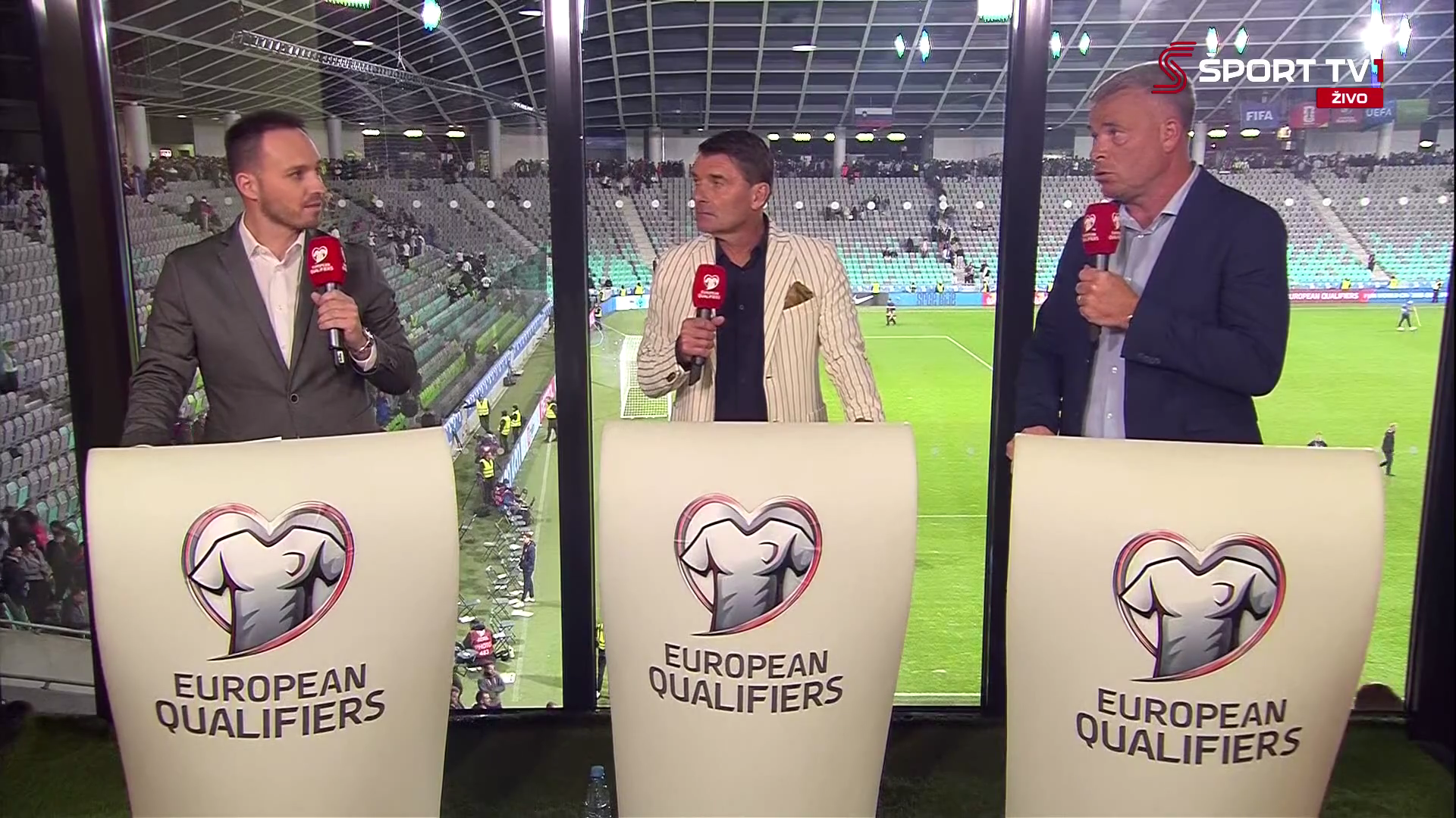 O tekmi smo se v studiu pogovarjali tudi z dvema nekdanjima reprezentantoma Tončijem Žlogarjem in Sašo Udovičem. Žlogar je dejal: “Tekma brez golov, zelo taktična in dinamična. Švicarjem smo pustili zelo malo možnosti, da bi dosegli zadetek. Bili smo zelo kompaktni. Tekma, ki je imela velik vložek. Kot je dejal Svit Sešlar novembrske kvalifikacije, bodo tiste, ki bodo odločale. Šteje vsaka točka, a na koncu se bo seštevalo.”